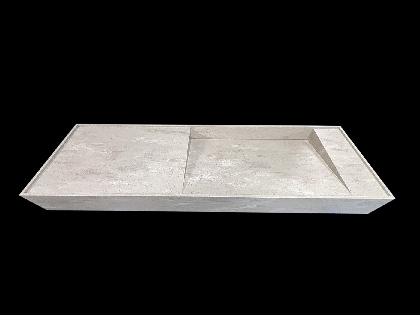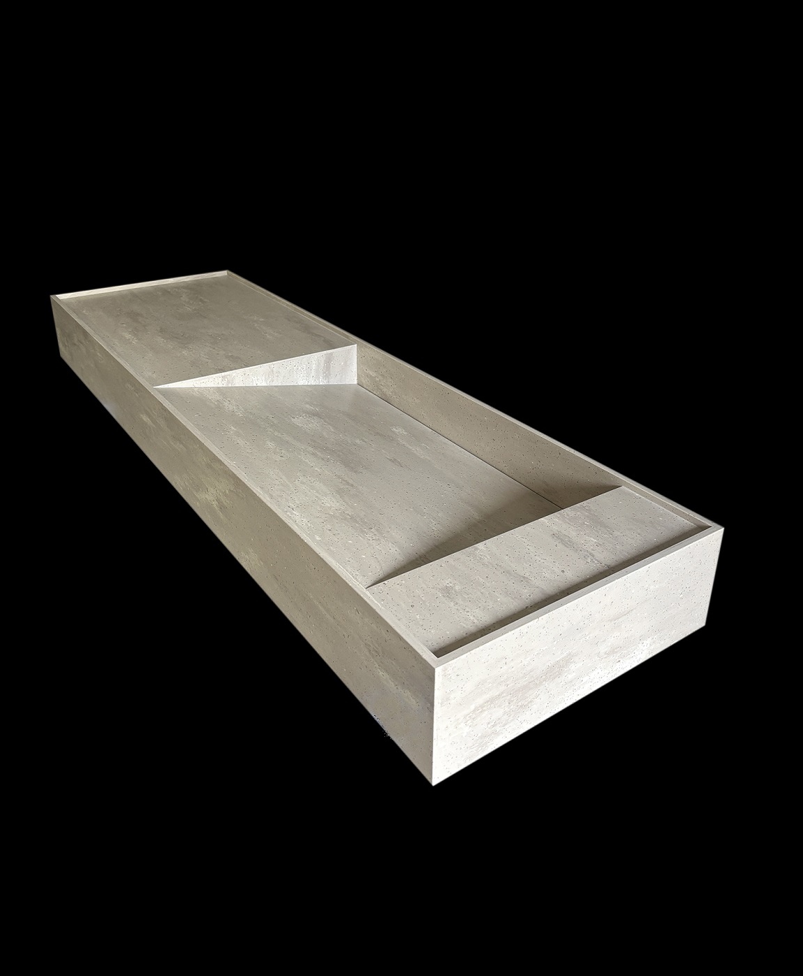 Tylny odpływ liniowy to detal, który robi ogromną różnicę wizualnie. Zamiast klasycznego, centralnego punktu odpływu mamy czystą płaszczyznę i uporządkowaną linię przy tylnej krawędzi. Dzięki temu strefa umywalki wygląda bardziej architektonicznie, a cały blat sprawia wrażenie jednolitej, dopracowanej bryły.