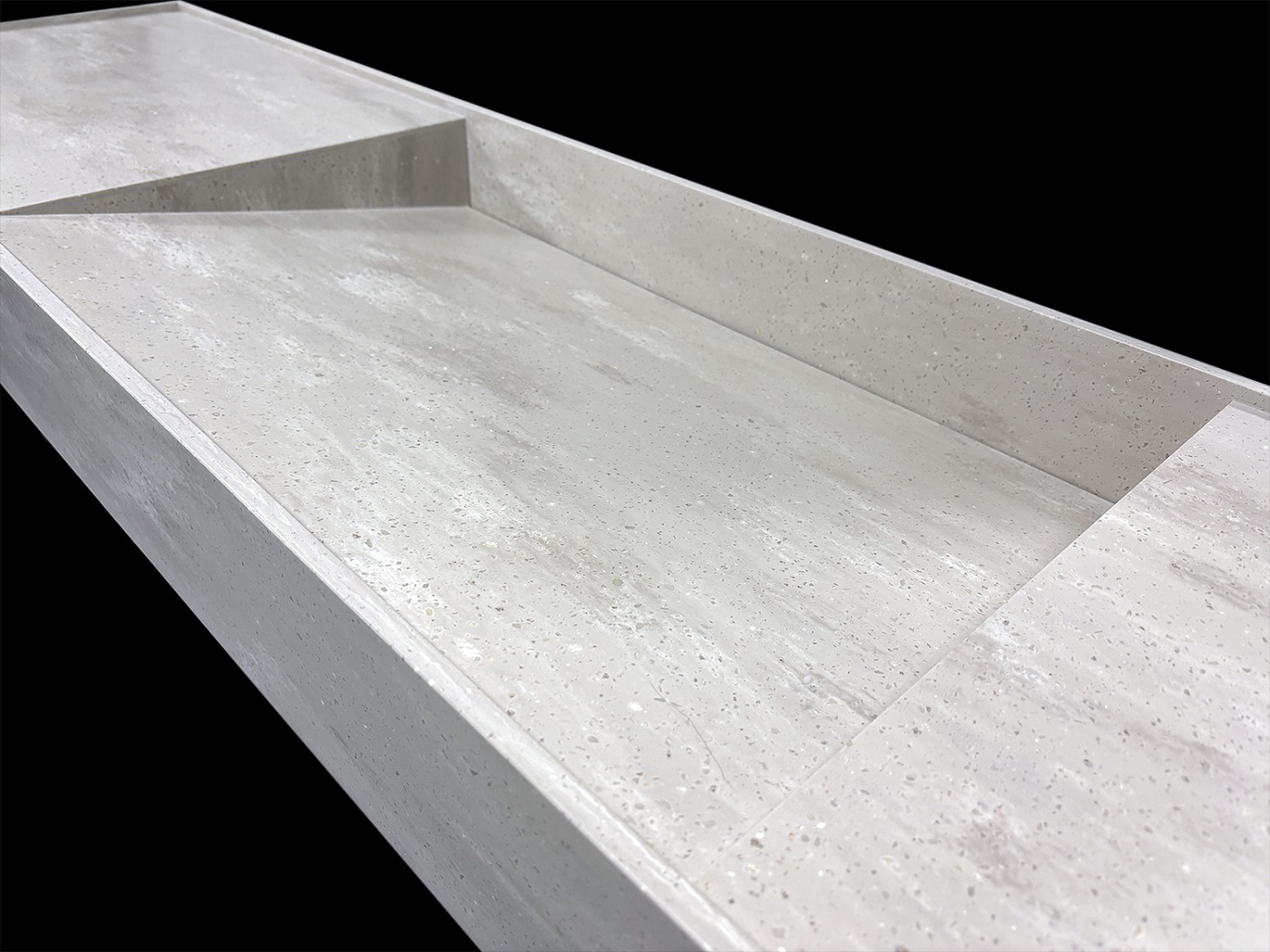 W łazience premium najważniejsze rzeczy często są… niewidoczne na pierwszy rzut oka. To nie „ozdoby” budują jakość, tylko konsekwencja formy, proporcje i detale, które poprawiają codzienne użytkowanie. Ta realizacja jest dokładnie o tym: umywalka wykonana na zamówienie z Corian® Neutral Aggregate, z dyskretnym tylnym odpływem liniowym, dużą misą oraz podwyższonymi rantami, które chronią przed rozlewaniem wody.