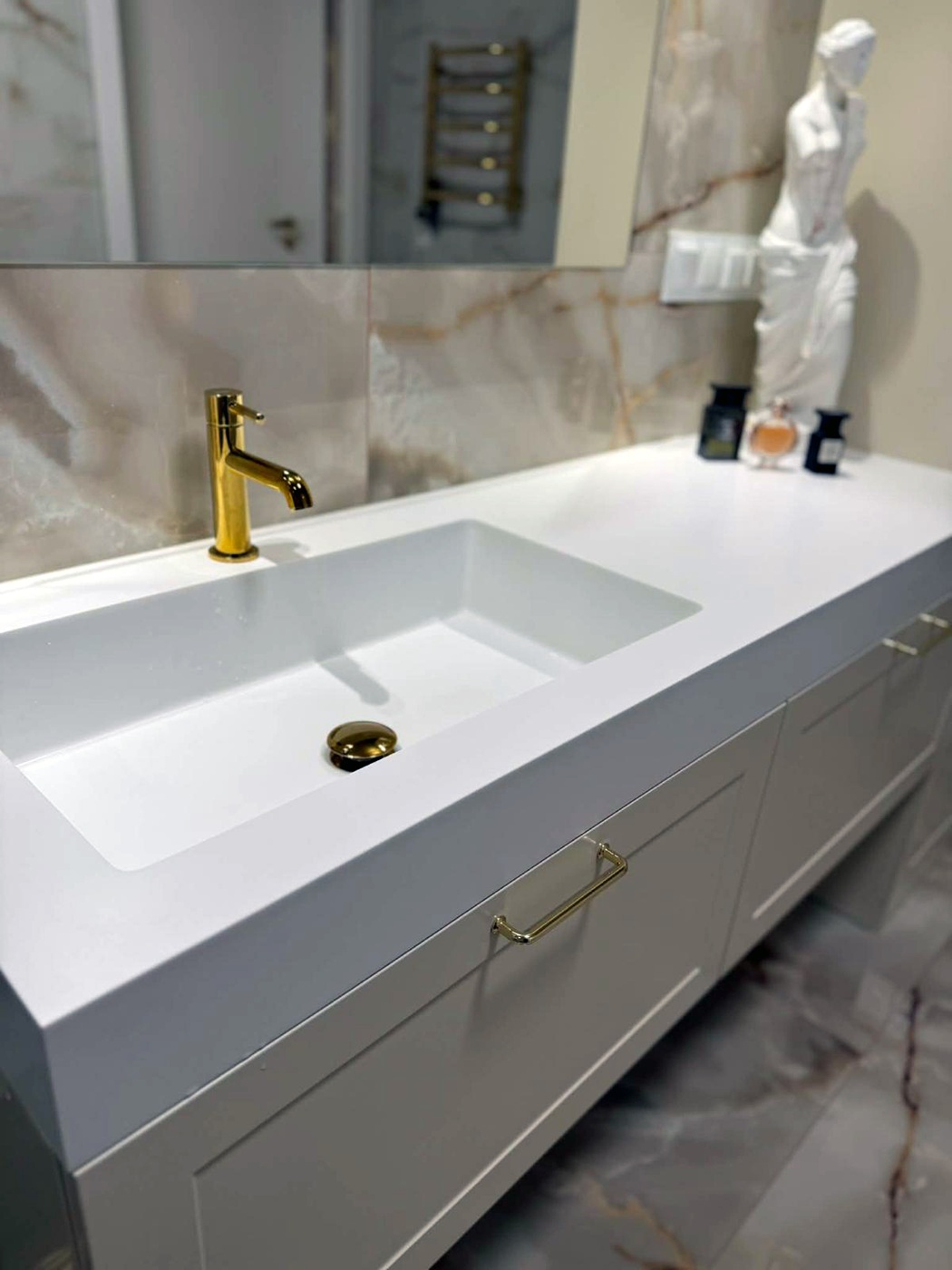 #alpinewhite #umywalkazintegrowana #designwnętrz #nowoczesnalazienka #solidSurface #minimalizm #premiumdesign