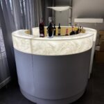 Najważniejszym elementem jest modułowość – lada składa się z czterech segmentów, które można dowolnie ze sobą łączyć, zmieniać ich układ i dopasowywać do przestrzeni. To rozwiązanie stworzone z myślą o elastycznych wnętrzach – hotelach, barach, showroomach czy strefach eventowych.